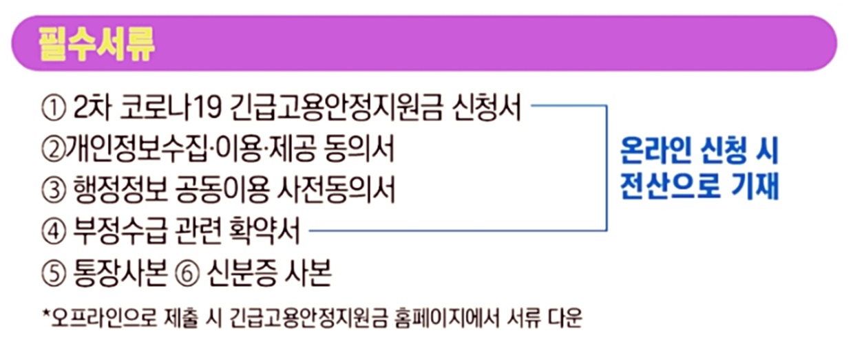 2차 긴급 고용안정지원금 필수 서류는 아래와 같습니다.