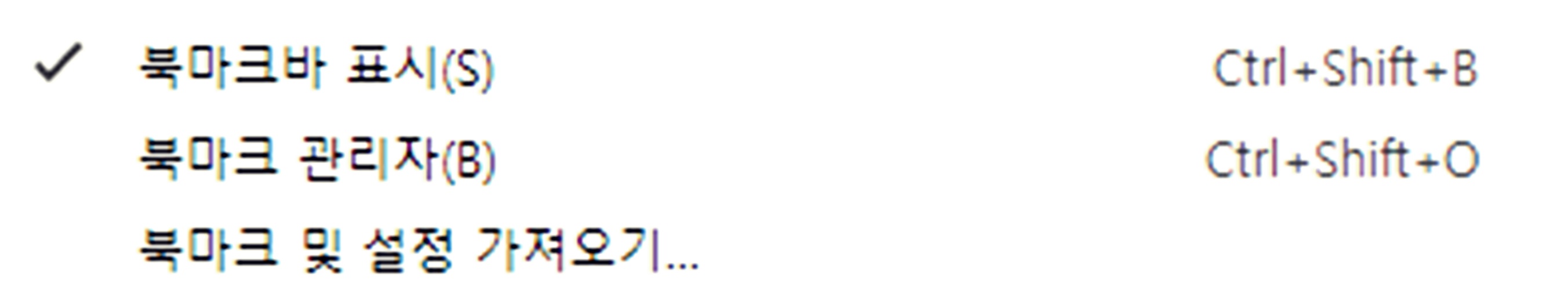 3. 오른쪽 젤위에 점 3개 모양을 눌러서 북마크 - 북마크바 표시를 체크한다.