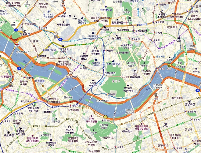 다음지도는 항공뷰를 최초로 도입하기도 하고 눈에 뛰기 쉬운 색과 편리함을 제공하기도 하였습니다.